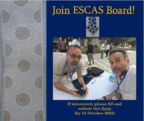 We are now looking for board members (or volunteers) to allocate the following responsibilities. Please note that ESCAS is a small organization, and the workload is accordingly very minor. Sometimes there are months with no tasks at all. But then, particularly around the biannual conference, the workload increases (and so do unintelligible messages on any kind of issue, so brace yourself with lots of patience).